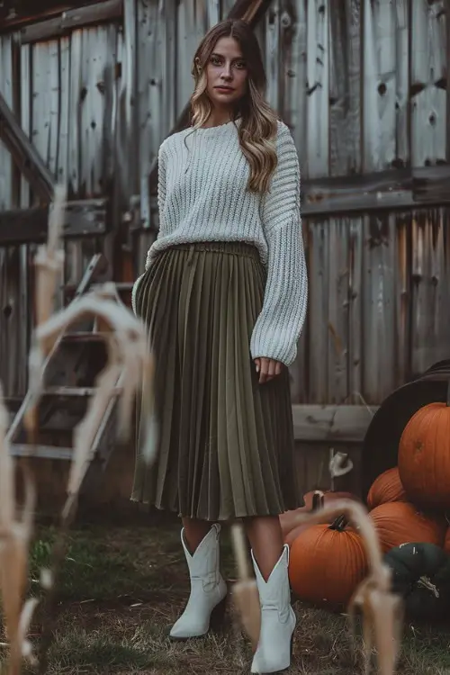 - Cowboy Boots, Sweaters and Skirts Outfits
