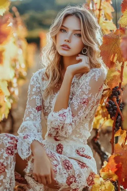 Pair it with vintage-inspired jewelry and a half-up hairstyle or an updo to complete the romantic aesthetic. For shoes, opt for block heels or ankle boots to add a touch of modern flair.